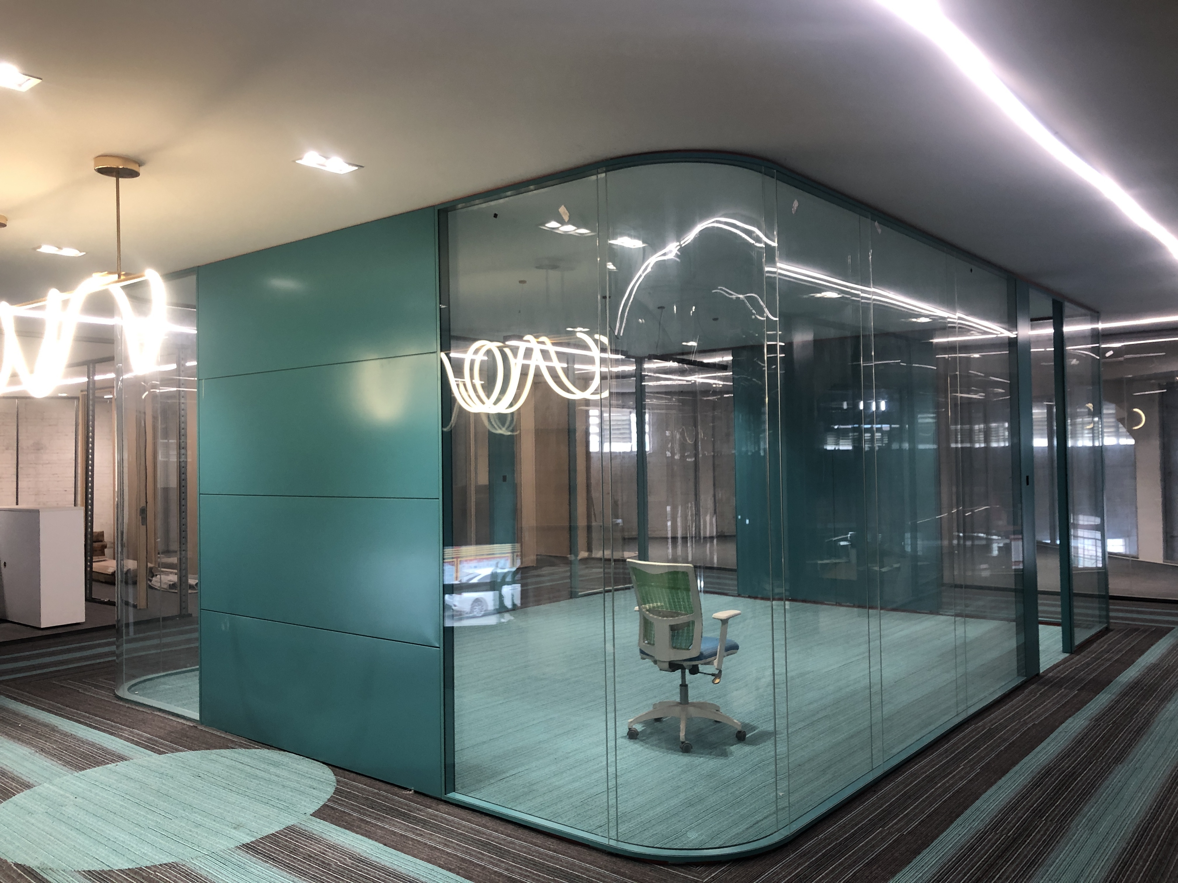 A) वास्तुशिल्प और आंतरिक डिजाइन | घुमावदार कांच विभाजन (कार्यालय, होटल, अस्पताल) |